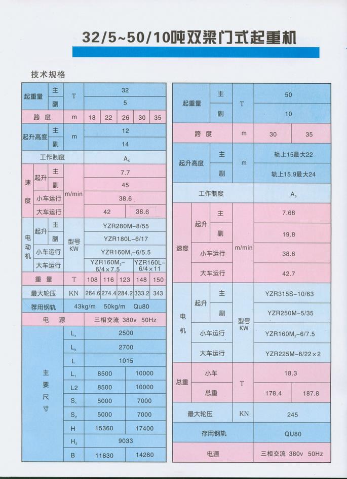 | 額定起重量 Load: | Gn | 5T,10T,16T,20T,32T,50T。 |